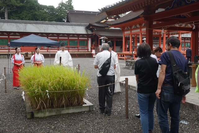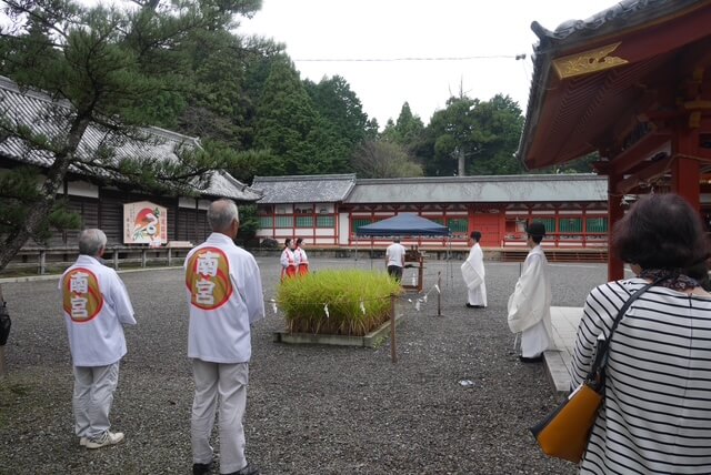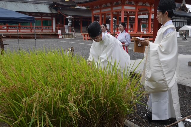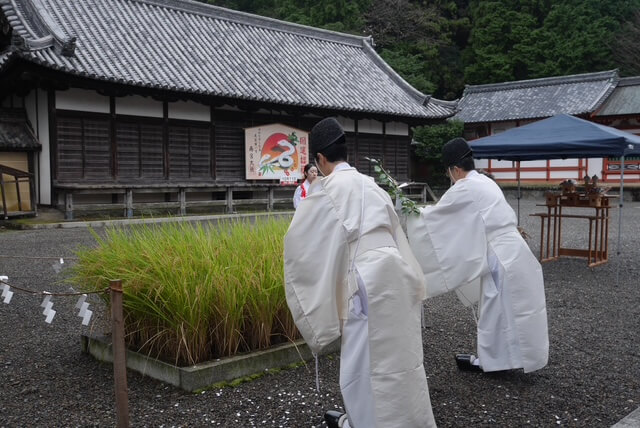 抜穂祭が斎行されました 2025/10/11 カテゴリー:祭事 share us 本日、雨の中ではございましたが抜穂祭が無事に斎行されました。 6月に皆様と共に植えた稲も立派に実り、収穫の時期を迎えました。稲はご神前にお供えし、豊かな実りを奉告いたしました。 ご参列いただきました皆様、誠にありがとうございました。 一覧に戻る すべての記事 その他 神事 祭事 日常