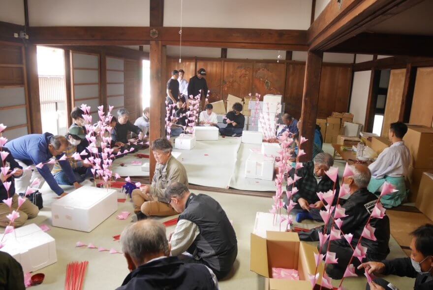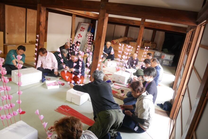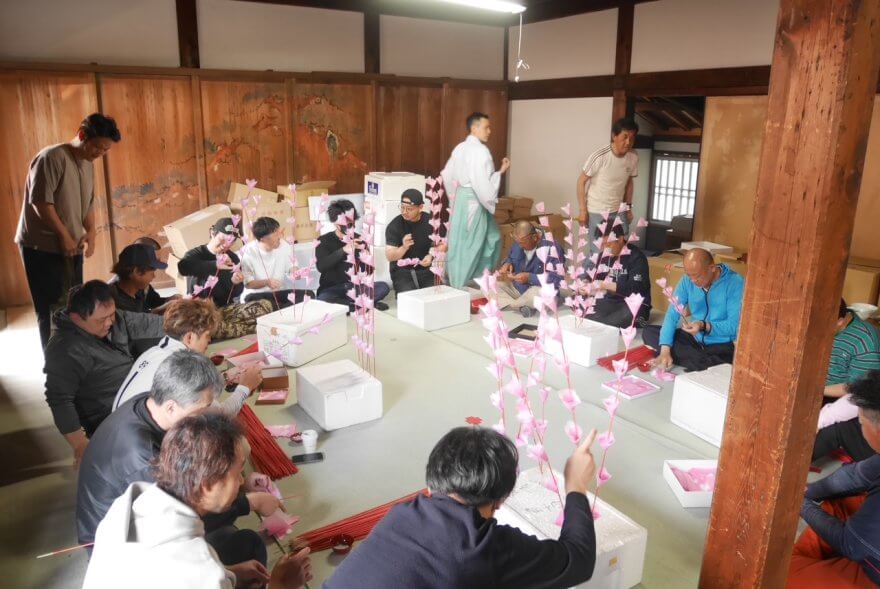 母衣奉製 お祭りが近くなって参りました 2026/04/27 カテゴリー:その他 share us 昨日、神輿会、氏子青年会の皆様がお祭りの母衣奉製に集まっていただけました。慣れた手つきで次々と母衣を作られる姿を見て、お祭りに向けての熱い心が伝わって参りました。 一覧に戻る すべての記事 その他 神事 祭事 日常