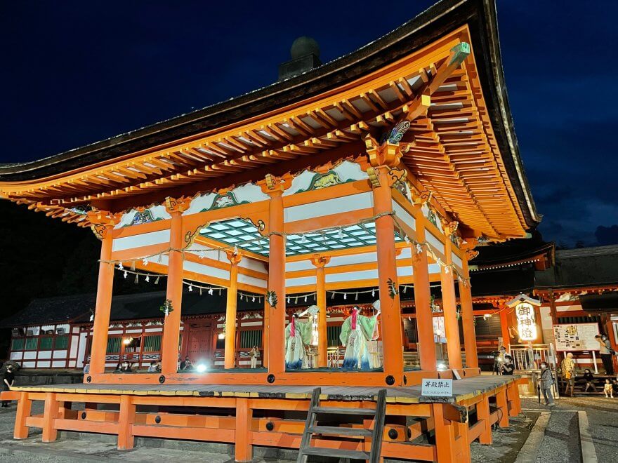 夜は21時まで開門しており、夜間参拝が可能です。夜間は納涼神楽も開催されます。