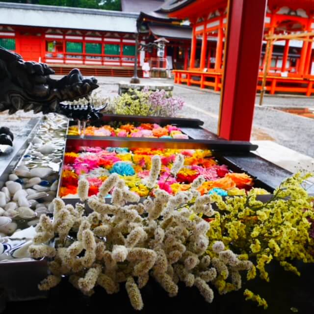 明日の月次祭はご参拝いただけます。また、花手水もお楽しみいただけます。