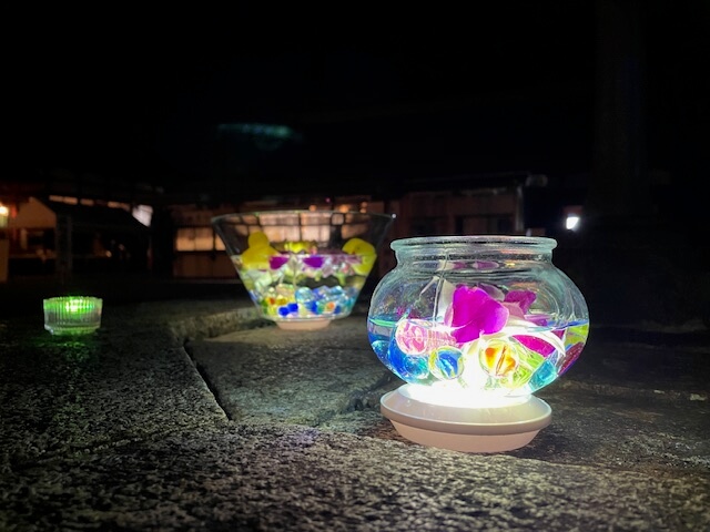 また、明日は花舞殿も開催いたします。夜間の南宮大社を色とりどりの花や器で飾り立て、皆様に楽しんでいただけるよう準備をしております。